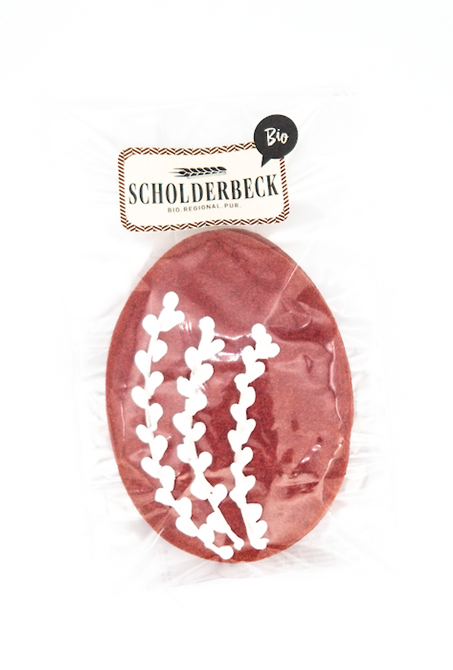 Aromatischer 100 % Dinkel-Osterkeks. Fein mürbe und angenehm buttrig im Geschmack. Mit fruchtiger süßer  Aprikosenkonfitüre gefüllt.