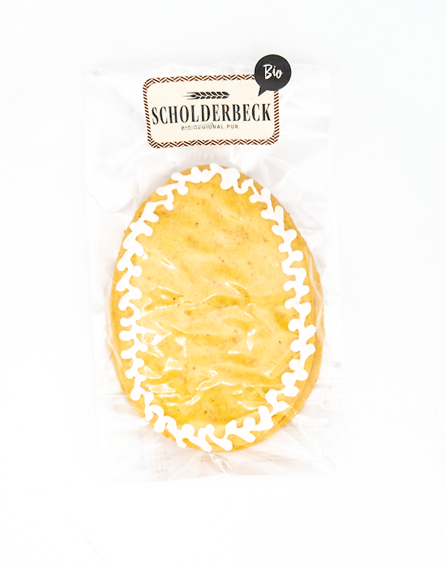 Aromatischer 100 % Dinkel-Osterkeks. Fein mürbe und angenehm buttrig im Geschmack. Mit fruchtiger süßer Aprikosenkonfitüre gefüllt.