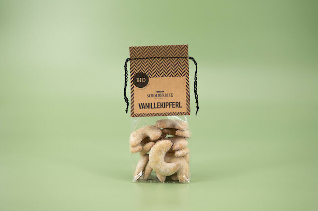 DINKELmehl T 630 Bioland, BUTTER Bio, Puderzucker Bioland, MANDELN Bio, MILCH Bio, Bourbon Vanillearoma Bio (1%), Weinsteinbackpulver Bio (Maisstärke Bio, Säuerungsmittel Reinweinstein, Backtriebmittel(Natriumhydrogencarbonat)